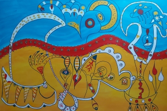 - 2D: Olieverf/acryl op doek