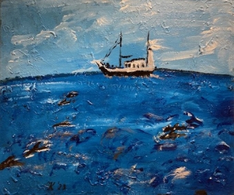 - Zonder titel (15399) Bootje op zee